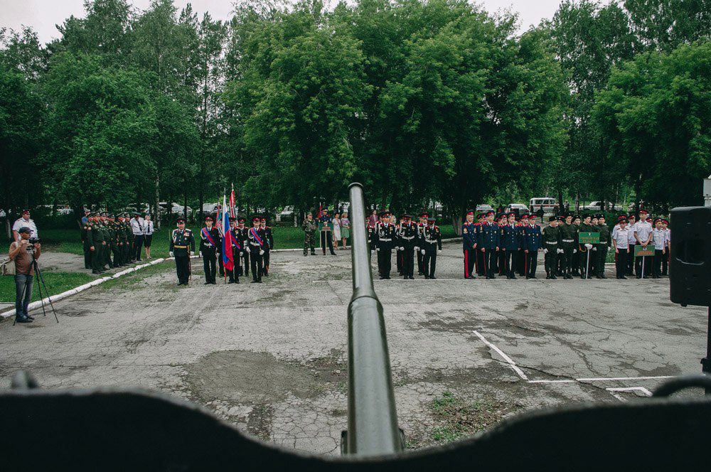 На крыльце стоит молодой ведущий в клетчатом хипстерском пиджаке и считает до пяти в каждый из четырёх микрофонов, примотанных к стойкам изолентой. Вокруг взрослого усатого казака отряд молодых бойцов внимательно слушает командира: