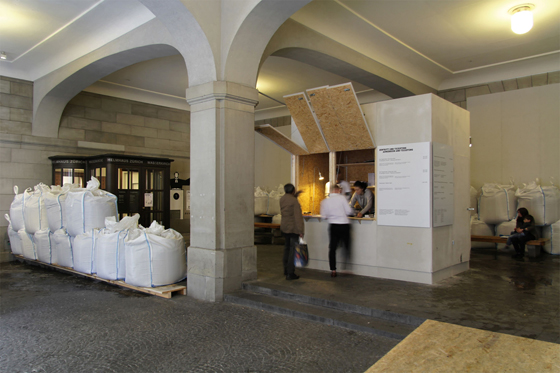 Почти наивная тематичность основной экспозиции — только завязка для экспансии пространства выставочного события биеннале внутрь городской жизни. Эту стратегию можно было бы назвать джентрификацией по живому. Воспользовавшись темой профессии, из запустения джентрифицированных пространств выставка выходит в «действующие» миры профессиональной жизни процветающего Цюриха. Вот только при соприкосновении с институциональной системой биеннале эти «действующие» миры часто становятся такими же выморочными, как бывшие манежи, тюрьмы, пивоварни и оружейные склады, в которых обычно обитает искусство и которые требуют от культурных менеджеров смекалки и изобретательности, чтобы включить их в туристически-событийное движение города.