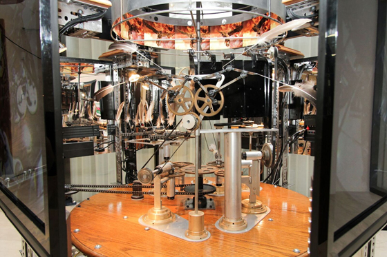 Еще несколько работ размещалось в центральном квартале дорогих магазинов и отелей. Работа Джона Кесслера «Мир сошел с ума» находилась в подвале бутика роскошных часов Ambassador. Я вошла одновременно с группой японцев; их проводили прямо к прилавкам, меня — без лишних вопросов — в подвал, где вертелся причудливый механизм, напоминающий о технических диковинах XVIII века. На мониторах, подключенных к этой бесноватой конструкции, приводимой в движение часовым механизмом, возникала то панорама Цюриха, то фотография раскинувшего крылья злобного деревянного орла на фоне взрыва. Если глядеть на мониторы достаточно долго, можно было заметить, что на мгновение, не больше, крутящаяся панорама Цюриха сменяется жуткими кадрами тонущих мигрантов, войн и разрушений. За стеклом в том же помещении работали невозмутимые швейцарские часовщики. «Но ведь так и задумано», — подумала я.