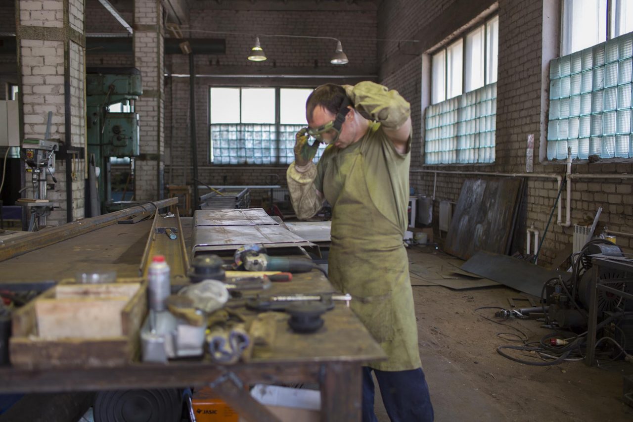 «Эти станки мы нашли вообще в Иванове и вернули обратно. Для местных это как бальзам на душу. Они на этих станках когда-то работали. Жителей часто приходится привлекать, — говорит Андрей, останавливаясь возле сварочного стола, за которым обычно работает. — У нас на самом деле не хватает сварщиков. Я обычно варю до зеленых соплей. Вечером книжку открываешь, а у тебя сварка перед глазами бегает».