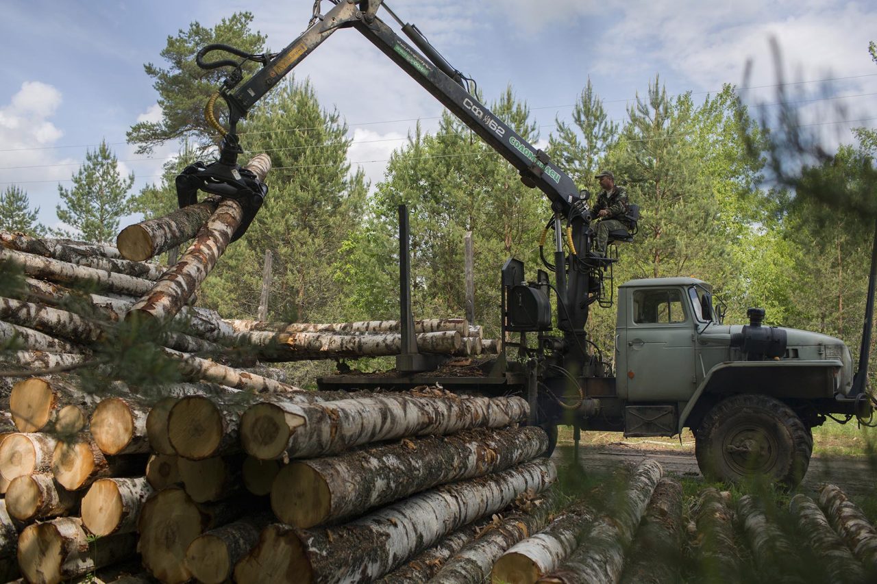 Рабочий манипулятора на территории погрузки-разгрузки лесоматериалаФото: Ирина Емец для ТД Андрей — высокий, длинноволосый и приветливый парень. На поясе его камуфляжных штанов висит рация, в которую каждые несколько минут он отдает какие-то указания. По наставлению начальства слободы он должен провести для меня экскурсию по территории коммуны и показать только то, что можно. Основной объект – пилорама, на которой трудятся усыпанные опилками мужики. Они радостно приветствуют нас, но, несмотря на это, откровенничать не спешат, ограничиваясь лишь дежурными фразами о том, что все хорошо, и они всем довольны. Потом быстро переключаются на обсуждение характеристик различной древесины и размышления, что можно из нее сделать. Почти сразу возникает навязчивое чувство, что находишься где-то в Северной Корее, которую перенесли в Костромские леса.