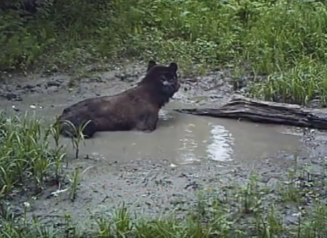 В заповеднике «Столбы» засняли медведя, купающегося в луже