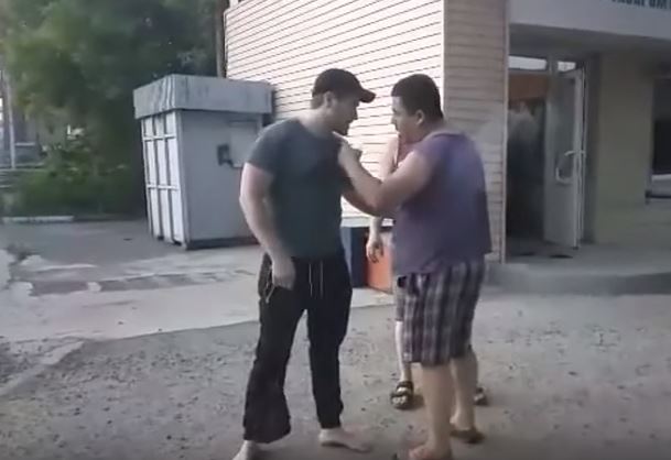 Однако мужчина в красной футболке в конце видео все же нанес удар одному из участников.
