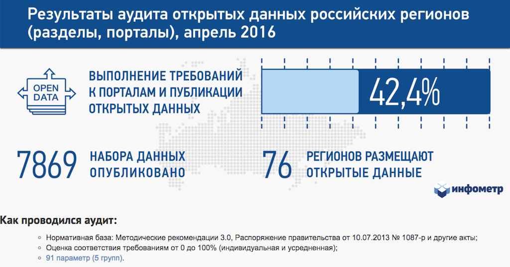 «Инфометр» начал проект по интерактивному аудиту региональных открытых данных. Интерактивный аудит открытых данных может быть полезен разработчикам и активистам для того, чтобы предложить варианты адаптации порталов ОД под свои потребности.