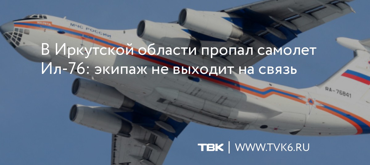 В Иркутской области самолет Ил-76, принадлежащий МЧС России, перестал выходить на связь.Как сообщает ТАСС со ссылкой на источник в экстренных службах, самолет перестал выходить на связь на высоте примерно 3 тыс.Из Красноярска на поиски пропавшего самолета вылетел самолет-амфибия Бе-200, передает РБК.