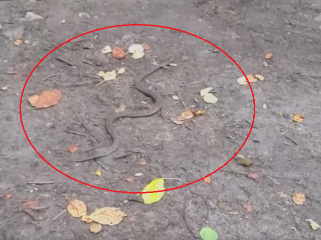 На опубликованных кадрах видно, как потревоженная змея, которая грелась на солнце на тропинке, скрывается в траве.