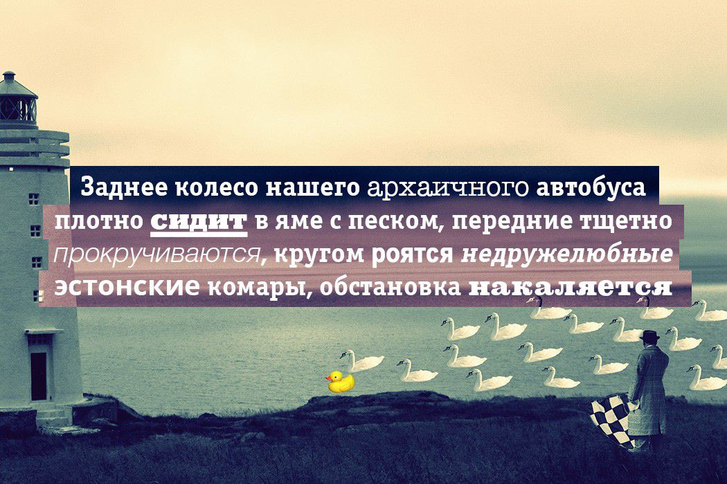 Наша читательница Маша Грин прислала нам риал-роуд-стори о своей сумасшедшей поездке на эстонский остров с маяками. Маша, спасибо и прекращайте паниковать, это вредно для здоровья и ни к чему! Этот рассказ продолжает серию текстов вашего любимого самиздата «Батенька, да вы трансформер», посвящённых приключениям путешественников — наших друзей и читателей. Вот здесь можно почитать, как Кощей и Исачок в Таллин ездили и привидение напугали, вот тут история о том, как психиатр и бодибилдер искали секс-туризма, а здесь — как наша читательница пыталась попасть в Крым. А знаете, где ещё путешествия и приключения? Да в наших экспедициях, конечно же! Читатель, почитай наши лонгриды об экспедициях в Адский треугольник и аномальные зоны Республики Коми и пришли нам историю своих собственных приключений, мы очень её ждём!