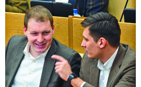 Роберт Шлегель (слева), рискнувший критиковать «Закон Димы Яковлева», беседует с оппозиционером Дмитрием Гудковым, Москва, 24 февраля 2016 года