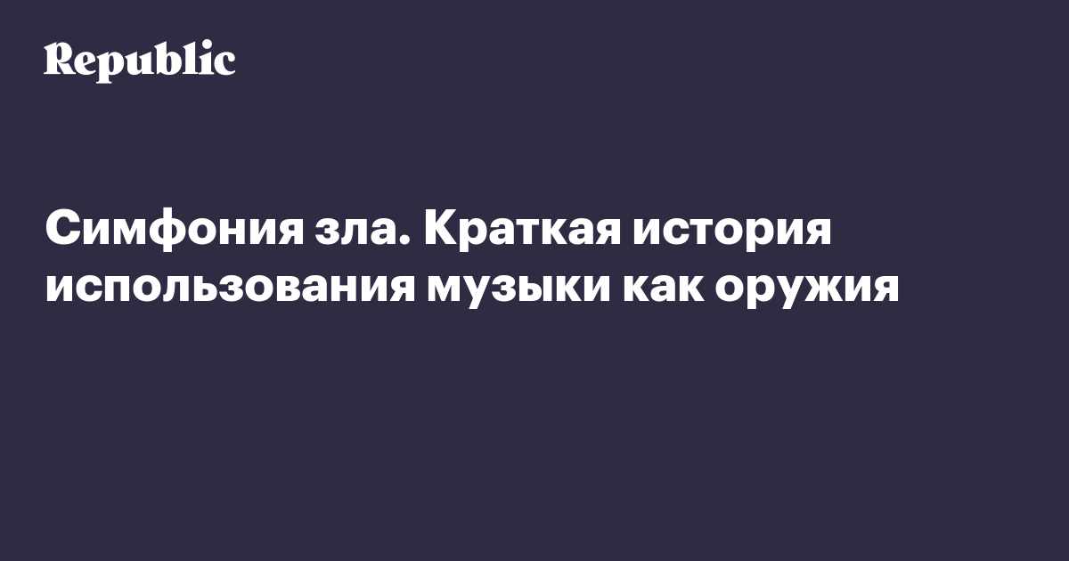 Звук может быть страшным оружием: он проникает повсюду, от него невозможно защититься и спрятаться. Мы слышим не только ушами, но и всем телом, звук проходит сквозь стены, заполняет пространство, от него не скрыться, закрыв глаза, поставив бронированную дверь или опустив жалюзи. Нам кажется, что использование музыки в качестве орудия зла идет наперекор ее природе – ведь она очищает душу, объединяет и освобождает. Однако история делает эту мысль не более чем наивной надеждой. Музыкальный критик New Yorker Алекс Росс рассказывает, как звуки могут нести ненависть, боль и войну.