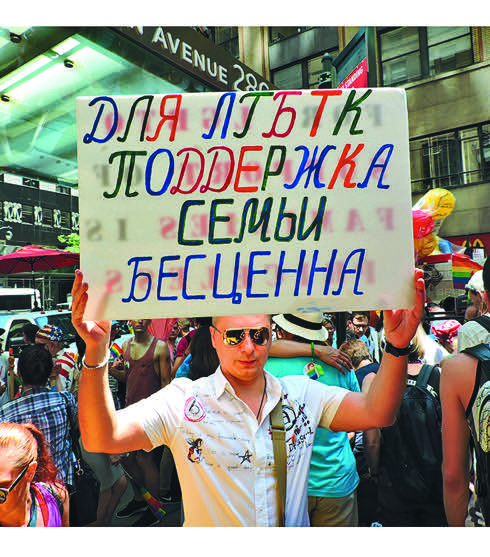 Русскоязычные геи называют Gay Pride Parade просто «прайдом», и их число среди участников парада постоянно растет. В начале 1990-х на них выходили от силы пара десятков эмигрантов из бывшего СССР, шагавших под транспарантом с надписью Russian Federation. На одном из них я столкнулся с тогда еще юной журналисткой Машей Гессен, а на другом — с выходцем из Воронежа импрессарио Львом Трахтенбергом. Маша Гессен 26 июня была на параде с женой Дашей и детьми. На Прайде-2016 русскоязычный контингент, который снова, как и в прошлые разы, собирался перед началом шествия на 40-й улице, между Мэдисон (Madison ) и Пятой авеню (Fifth Avenue), превысил 200 человек. Русскоязычные представители ЛГБТ-сообщества давно уже не выступают только под российским стягом — в этом году они шли под флагами нескольких бывших союзных республик, от Грузии до Узбекистана.