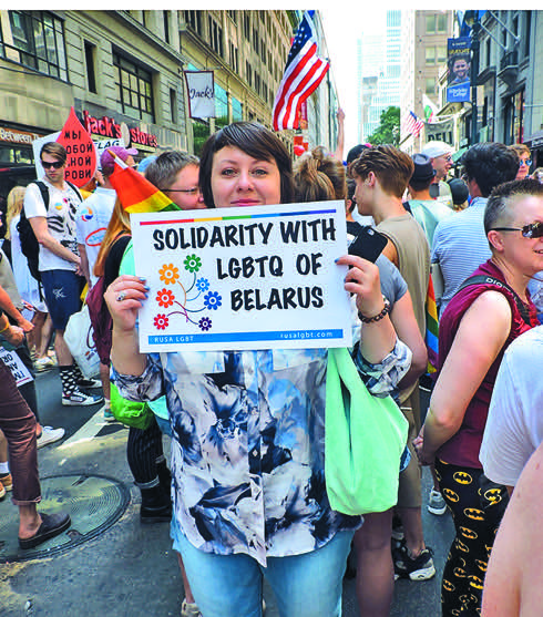 Украинец держал плакатик с надписью Ukraine. Gay OK, девушка из Белоруссии — «Солидарность с ЛГБТК Беларуси» (буквы К или Q означают queer или questioning — человек, который еще не определился с ориентацией), а бывший москвич Виктор В., прибывший в США несколько месяцев назад, ходил с плакатом «Для ЛГБТК поддержка семьи бесценна».