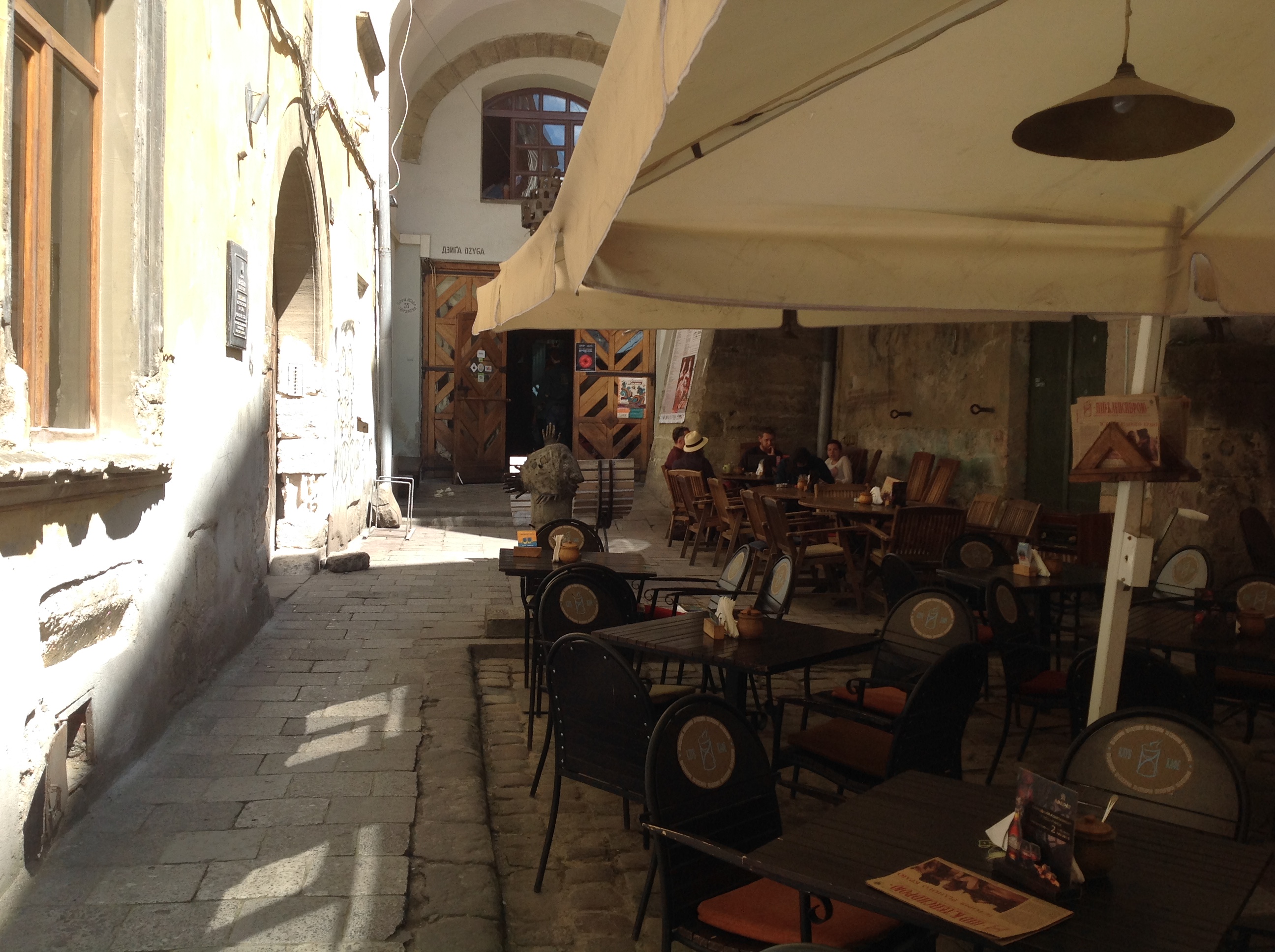 Евгения Нестерович: Ну, вот, всех сюда приведут рано или поздно, да. На самом деле, это место и для туристов, которые приезжают, не заинтересованные в каких-то культурных мероприятиях, а берут стандартную экскурсию по городу, это место тоже входит в маршрут, обязательно. Другое дело, что им расскажут, скорее, какие-то легенды, чем действительно достижения этого места, но тем не менее. И остальные места, которые энергетически и идейно связаны с "Дзыгой" в городском пространстве, либо остались как страшный сантимент, как, например, легендарный клуб "Лялька", о котором до сих пор все эти легенды очень живы, и есть масса народу, которая просто выросла "под "Лялькой", как это называется. Это где Кукольный театр. Ну, и все это сразу для меня первое, что появилось на карте моего Львова, эти места. А сейчас у меня, например, на Фейсбуке есть отдельный хэштег для разговоров, которые тут можно услышать за соседними столиками, иногда это бывает сумасшедший разговор девочек-подростков, а иногда можно услышать какие-то дискуссии о политических устройствах и о философии. Тут всегда интересно, сюда можно прийти, на сто процентов зная, что либо ты кого-то встретишь, с кем интересно поговорить, либо ты увидишь что-то, что интересно и стоит увидеть.