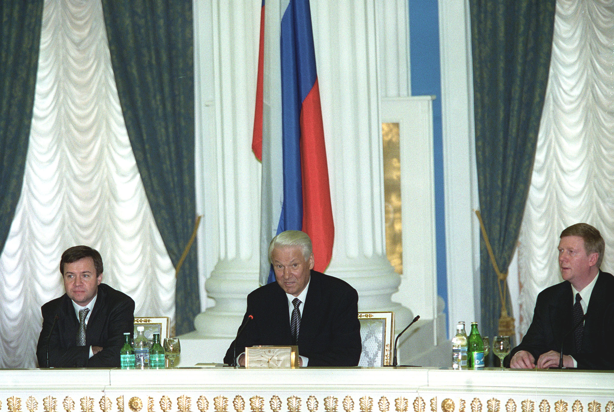 Что касается олигархов, то они после выборов 1996-го получили даже правительственные посты. В августе Владимир Потанин стал вице-премьером, а Борис Березовский, в октябре, – замсекретарем Совета безопасности России (как и еще один подписант "письма тринадцати, президент "Вымпела" Николай Михайлов). Михаил Фридман, Александр Смоленский и Владимир Гусинский были назначены членами совета по вопросам банковской деятельности при правительстве. Бизнесмены получили в собственность большие государственные активы, выставляющиеся на залоговых аукционах. Перемирие между ними было прервано в 1997 году, в борьбе за приватизацию “Связьинвеста”, и это была первая в России информационная война, с участием принадлежавших им СМИ.