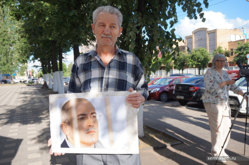 Пенсионер Виктор Афанасьев держал в руках портрет Михаила Ходорковского.