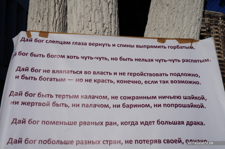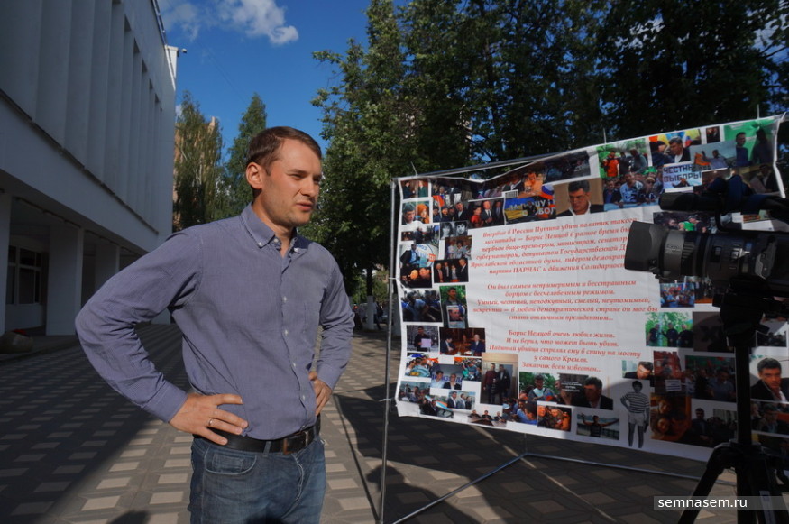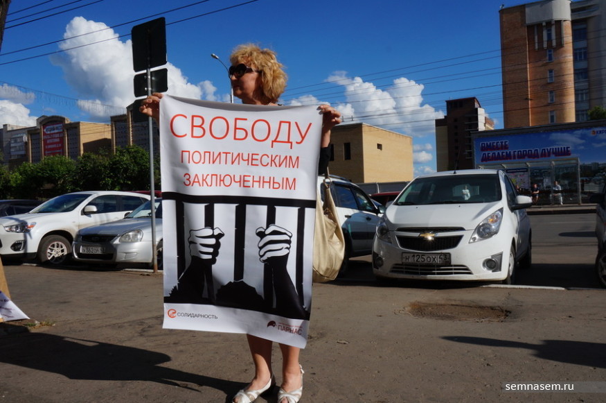 С председателем согласилась активист партии Надежда (свою фамилию она называть не стала). Женщина держала в руках плакат с надписью «Свободу политическим заключенным». Она уверена, что жители города должны знать о событиях на Болотной.