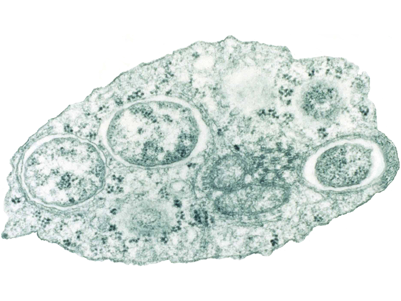 Вольбахии в клетке насекомого. Фотография, сделанная при помощи просвечивающего электронного микроскопа Wikimedia Commons Ученые из Висконсинского университета в Мэдисоне предлагают использовать бактерию Wolbachia pipientis для борьбы с распространением вирусной лихорадки Зика. Первые эксперименты, проведенные ими, показывают, что бактерии могут полностью блокировать передачу вируса через комаров Aedes aegypti, которые служат основными переносчиками лихорадки Зика в Южной Америке.