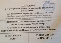 Накануне Блок оппозиционных сил, инициировавший референдум призвал граждан бойкотировать голосование. "Властями не были созданы условия для свободного волеизъявления граждан страны, - заявил в эфире Абхазского телевидения один из лидеров оппозиции Аслан Бжания. - В таких условиях проведение референдума нецелесообразно".