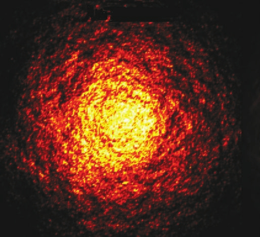 На картинке можно видеть модельное изображение рассеянного излучения космического объекта, на фоне которого, как оказалось, имеются маленькие компактные пятнышки — та самая открытая нами субструктура рассеяния [2]). Это происходит из-за интерференции лучей от «размноженного» изображения объекта после прохождения его радиоизлучения через турбулентные сгустки пыли в межзвездных облаках. (Простите, если не получилось внятно объяснить.) Вот эти компактные пятнышки и дали сигнал «Радиоастрона».