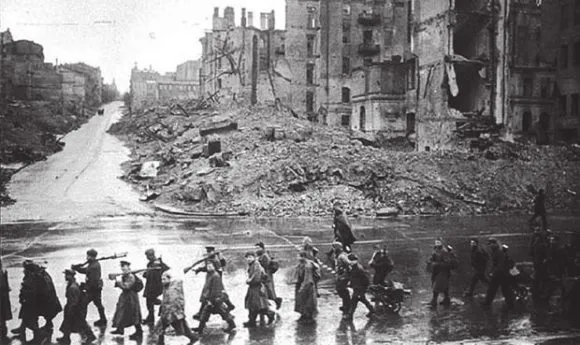 После сплошных развалин Харькова Киев показался вполне благополучным — почти ничего не было разрушено. Но это лишь пока не попал на Крещатик. А там оба «берега» были сплошь уничтожены, собственно Крещатик, — он был весь в руинах. Сохранилось лишь несколько зданий: универмаг на углу Ленина и Крещатика, квартал между Думской площадью и Дворцом пионеров. Над всем сладковатый трупный запах. Посредине улицы проложена трамвайная линия для вывоза развалин.