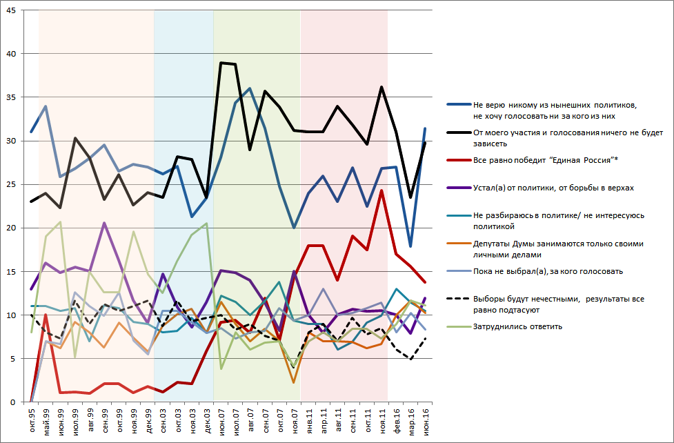 Причины отказа от голосования или сомнений по поводу участия в голосовании на выборах в ГД РФ. Инфографика Левада-Центра Для сравнения, в сентябре 2011 года, то есть за два с половиной месяца до выборов в шестую Думу, о своей готовности прийти на избирательные участки заявляли 56% респондентов, а итоговая явка, по официальным данным, составила 60,2%.