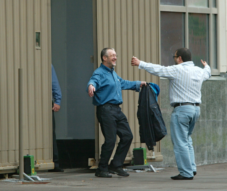 Криминальный авторитет Вячеслав Иваньков, более известный как Япончик (слева), с сыном после заседания суда.