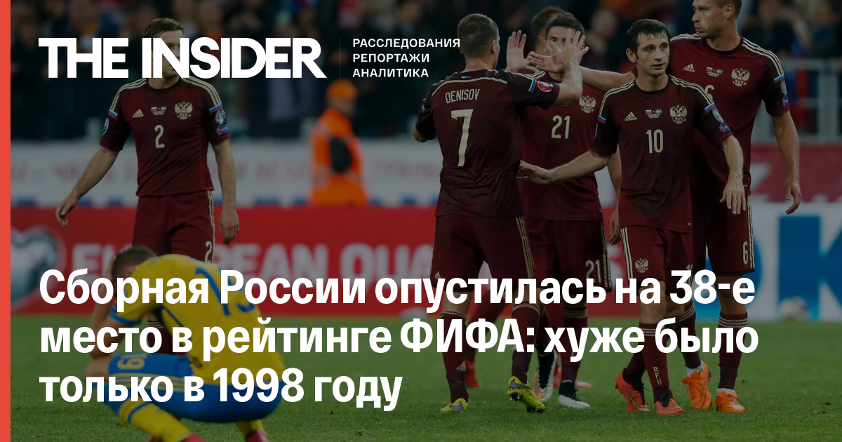 Сборная России опустилась на 38-е место в рейтинге ФИФА: хуже было только в 1998 году