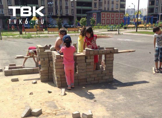 Отметим, подобного сооружения на игровой площадке новостроя нет: есть только качели и горка.В Красноярске во дворе на ул. Петра Подзолкова дети разобрали брусчатку и построили из блоков дом. Фото выложили читатели группы ТВК Красноярск ВКонтакте.