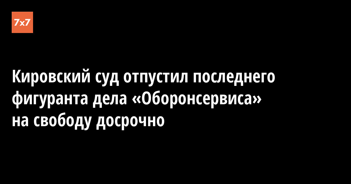 Кировский суд отпустил последнего фигуранта дела «Оборонсервиса» на свободу досрочно