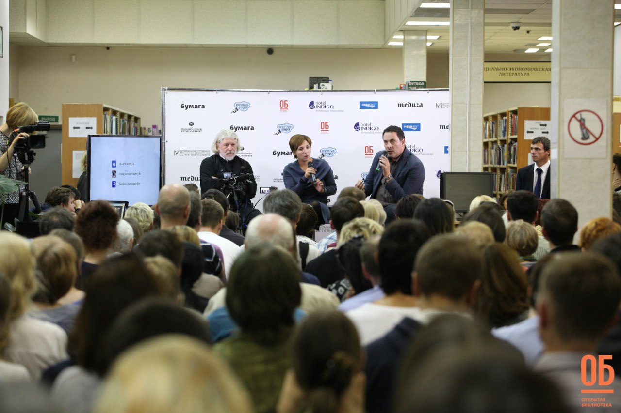 26 июня в петербургской библиотеке имени Маяковского собралось много народу. Начинались очередные «Открытые диалоги» — проект команды «Открытая библиотека», публичные дискуссии известных писателей, деятелей культуры, журналистов, ученых и политиков. За несколько часов до начала Николай Солодников, идеолог и создатель «Диалогов», выложил в Facebook фотографии участников — политолога Екатерины Шульман, культуролога Александра Эткинда, специалиста по древнерусскому искусству Левона Нерсесяна — и подписал: «У нас тут сегодня «Июньские диалоги». Вот такой замечательной компанией ждем вас».