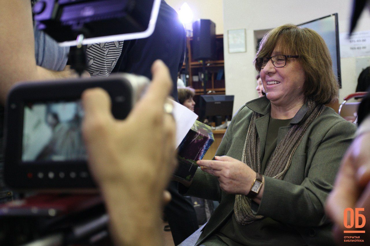 Светлана Алексиевич в «Открытой библиотеке»Фото: из архива "Открытой Библиотеки" В какой-то момент женщина меняется в лице и вспоминает, как работала в Маяковке еще в прошлом веке, когда здесь проводились «национальные» встречи, устраивали, например, грузинские культурные мероприятия. Викентьева припоминает, как тогда на это реагировали службы, и грустно вздыхает. «Не думали, что будет это возвращаться… Но сейчас время такое, да», — грустно говорит она.