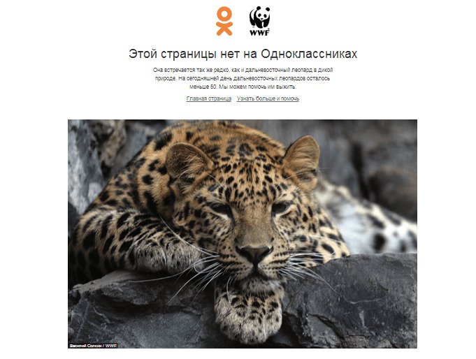 Ранее Всемирный фонд дикой природы (WWF) и одна из крупнейших российских социальных сетей Одноклассники запустили новый необычный проект на странице ошибки 404 под названием «Редкая страница» ради сохранения редких российских животных.