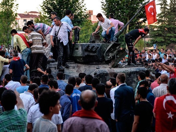Попытка госпереворота в Турции. CNN / Youtube В ночь на 16 июля в Турции произошла попытка смены власти. Ряд офицеров объявили, что гражданское правительство под руководством президента Реджепа Эрдогана попирает демократические свободы и права человека и должно быть отстранено. Переворот не удался, мятеж был быстро подавлен.