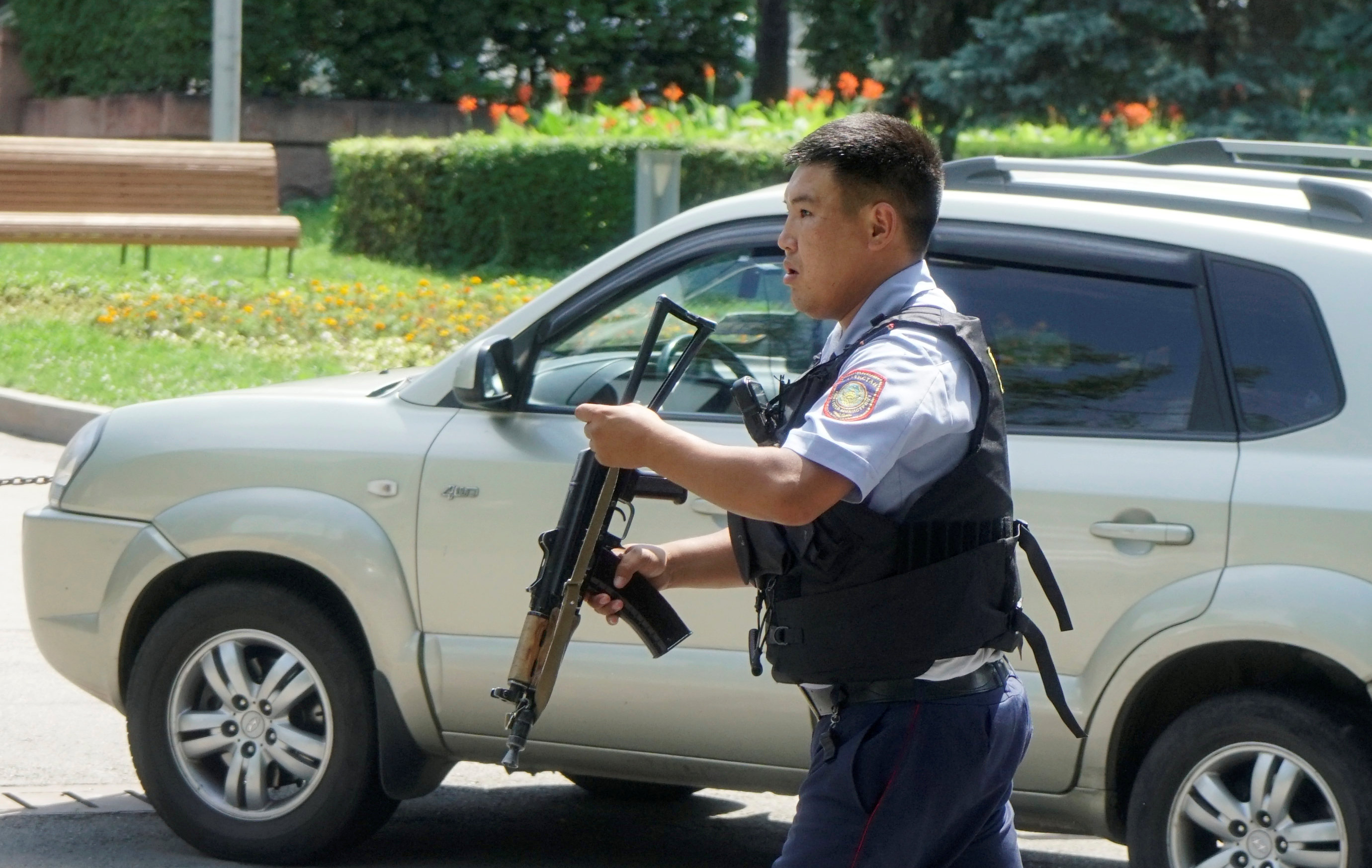 В Алма-Ате, вероятно, исламским радикалом убиты трое полицейских и один гражданин, чьим автомобилем воспользовались злоумышленники