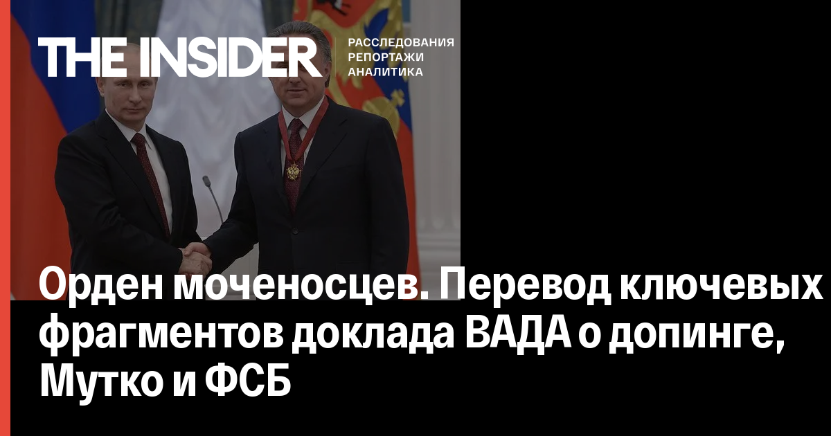 Орден моченосцев. Перевод ключевых фрагментов доклада ВАДА о допинге, Мутко и ФСБ