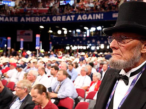 Съезд партии республиканцев по поводу поддержки Д. Трампа. Тем не менее, и этот эпизод, и демонстративное отсутствие некоторых известных республиканцев продемонстрировали, что в партии наблюдается сильнейший раскол, и до единодушия ей далеко.