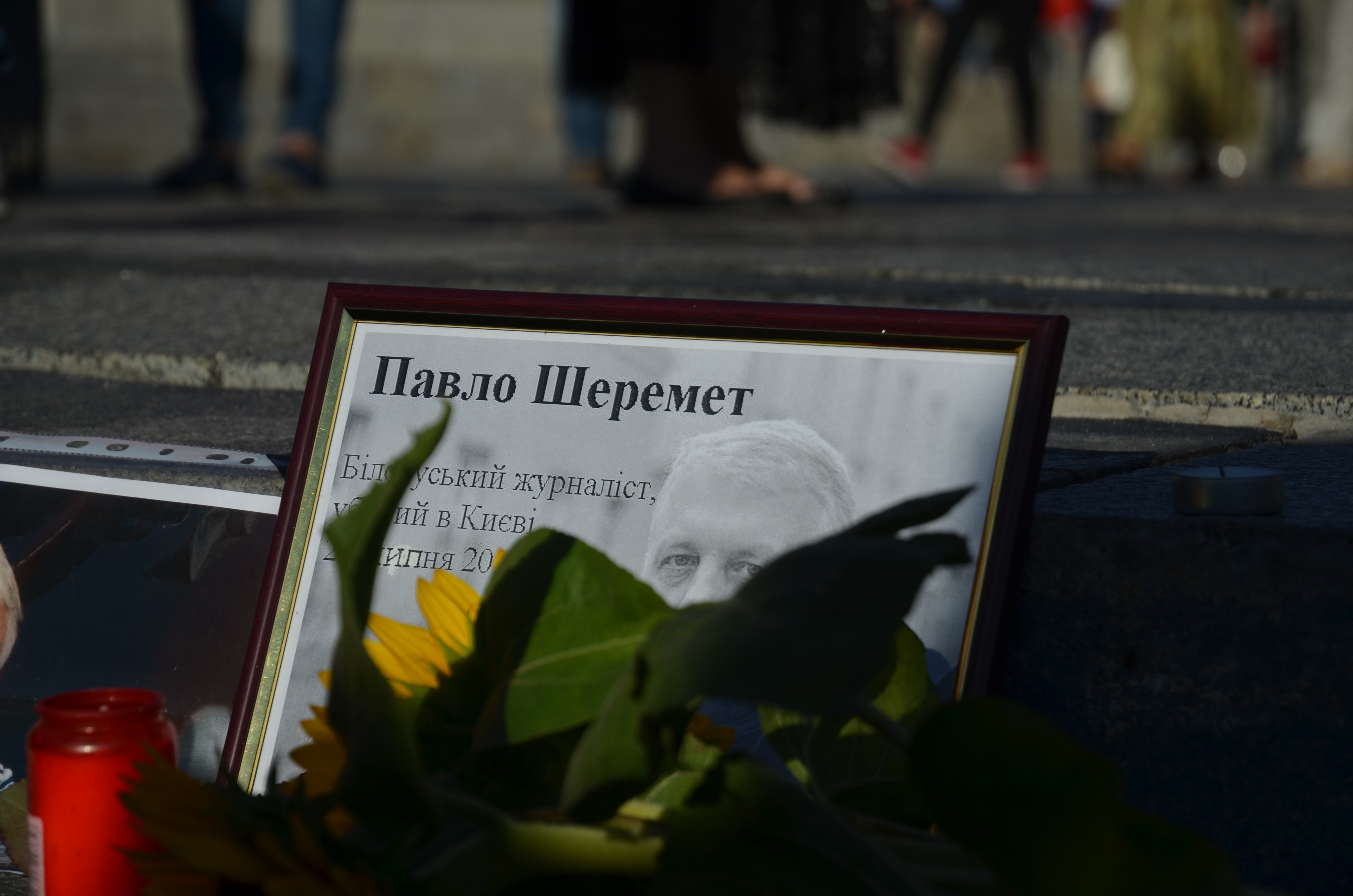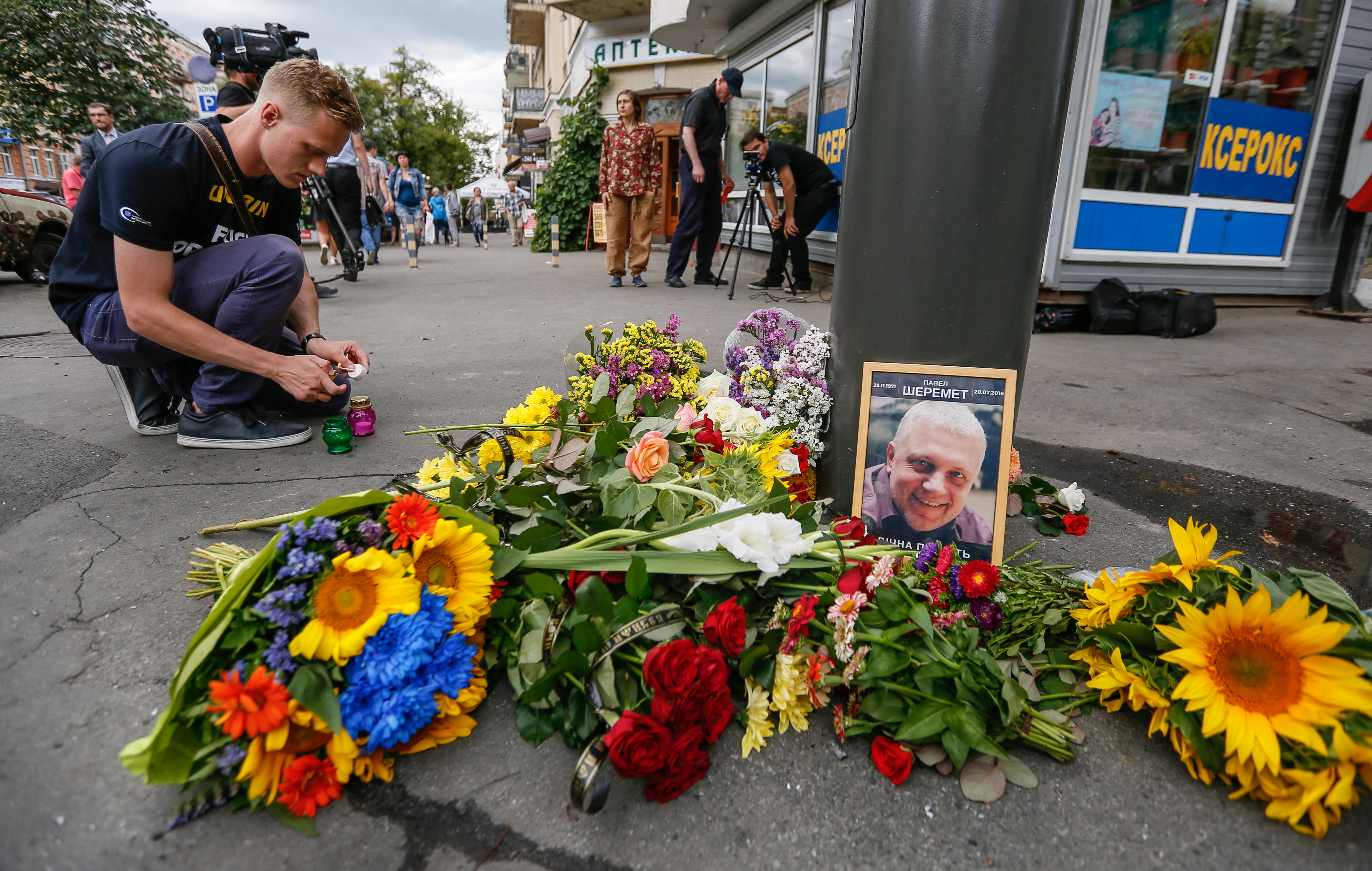 Киевляне несут цветы на место, где был убит Павел Шеремет