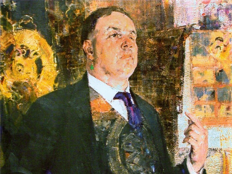 «Однажды вечером, когда я уже собирался лечь в постель, ко мне в дверь неожиданно постучалась Александра Экстер. Она была не одна. Вслед за нею в комнату ввалился высокого роста плотный мужчина в широком, по тогдашней моде, драповом, с длинным ворсом, пальто. На вид вошедшему было лет тридцать, но чрезмерная мешковатость фигуры и какая-то, казалось, нарочитая неуклюжесть движений сбивали всякое представление о возрасте. Протянув мне непропорционально малую руку со слишком короткими пальцами, он назвал себя: — Давид Бурлюк. Приведя его ко мне, Экстер выполняла не только мое давнишнее желание, но и свое: сблизить меня с группой ее соратников, занимавших вместе с нею крайний левый фланг в уже трехлетней борьбе против академического канона».