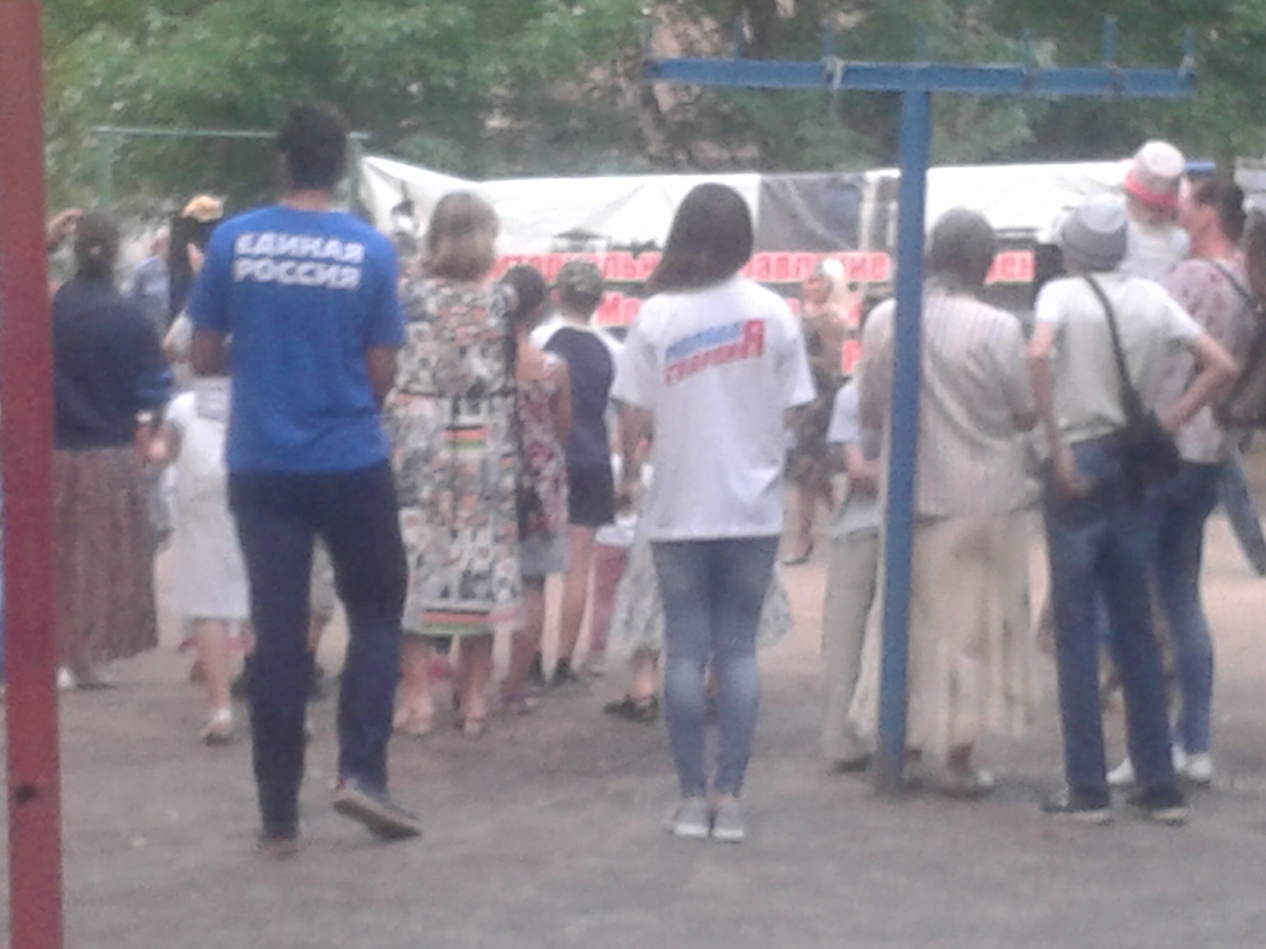 Прямо сейчас во дворе дома 19 по улице Интернациональной в Рязани проходит что-то вроде концерта-лохотрона. Какая-то тетка объясняет старушкам, что это то ли праздник двора, то ли праздник семьи, то ли и то, и другое одновременно. Тетка зовет всех жителей во двор и обещает всякие-разные сладости: ремонт двора, дома и что-то в этом роде. Начал петь какой-то певец. При этом на заднике написано Территориальное управление - префектура Московского района, Администрация г. Рязани. А вокруг толпы зевак кружат мальчики и девочки в майках "Единая Россия" и "Молодая гвардия". Если это праздник на народные денежки, то причем здесь "Единая Россия"? Не мешало бы прокуратуре поинтересоваться.
