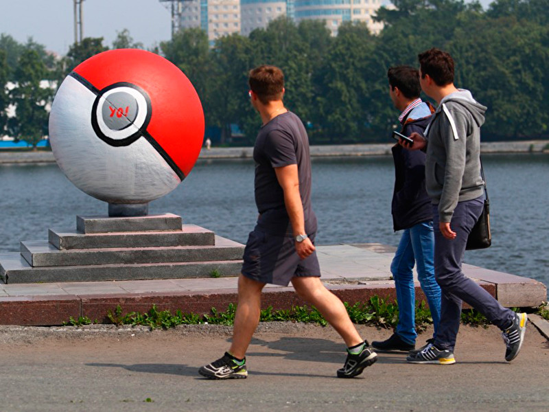 В Екатеринбурге художники раскрасили в цвета покебола (инструмента для поимки и хранения карманных монстров из игры Pokemon Go) каменный шар, расположенный на Октябрьской площади на набережной реки Исеть неподалеку от Театра драмы и здания правительства Свердловской области, сообщает интернет-газета Znak.com.