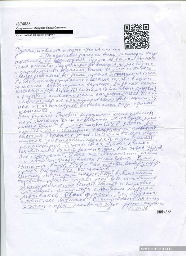Этот пост написан специально для «7x7». Самые интересные комментарии и вопросы пользователей будут отправлены автору редакцией посредством службы отправки сообщений ФСИН. Павел Марущак отреагирует на них, если посчитает возможным.