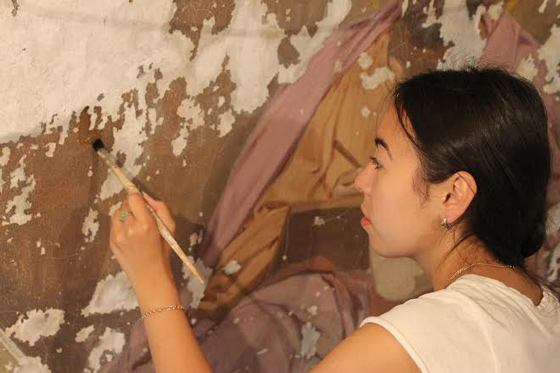 Юлия Сулейманова за работой в храме Рождества Христова в г. Ильинск: укрепление красочного слоя и подвод реставрационного грунта О положении вещей