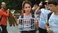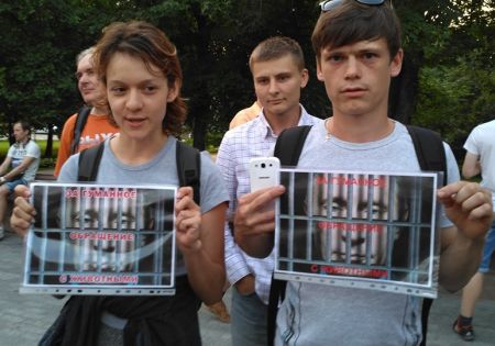 Некоторые из пришедших встали в одиночные пикеты. В связи с тем, что московские власти согласовали на месте митинга акцию в защиту животных, несколько активистов держали плакаты с изображением Владимира Путина за решеткой и надписью "За гуманное обращение с животными".