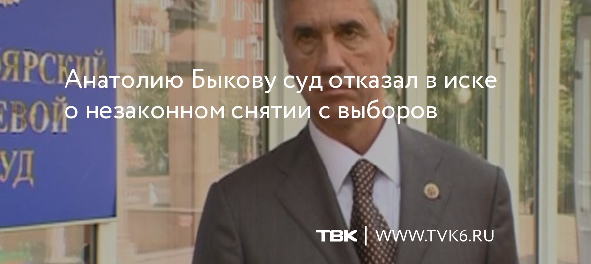 Напомним, избирательная комиссия Красноярского края отказала Анатолию Быкову в регистрации кандидатом в депутаты на выборах Законодательного Собрания Красноярского края.