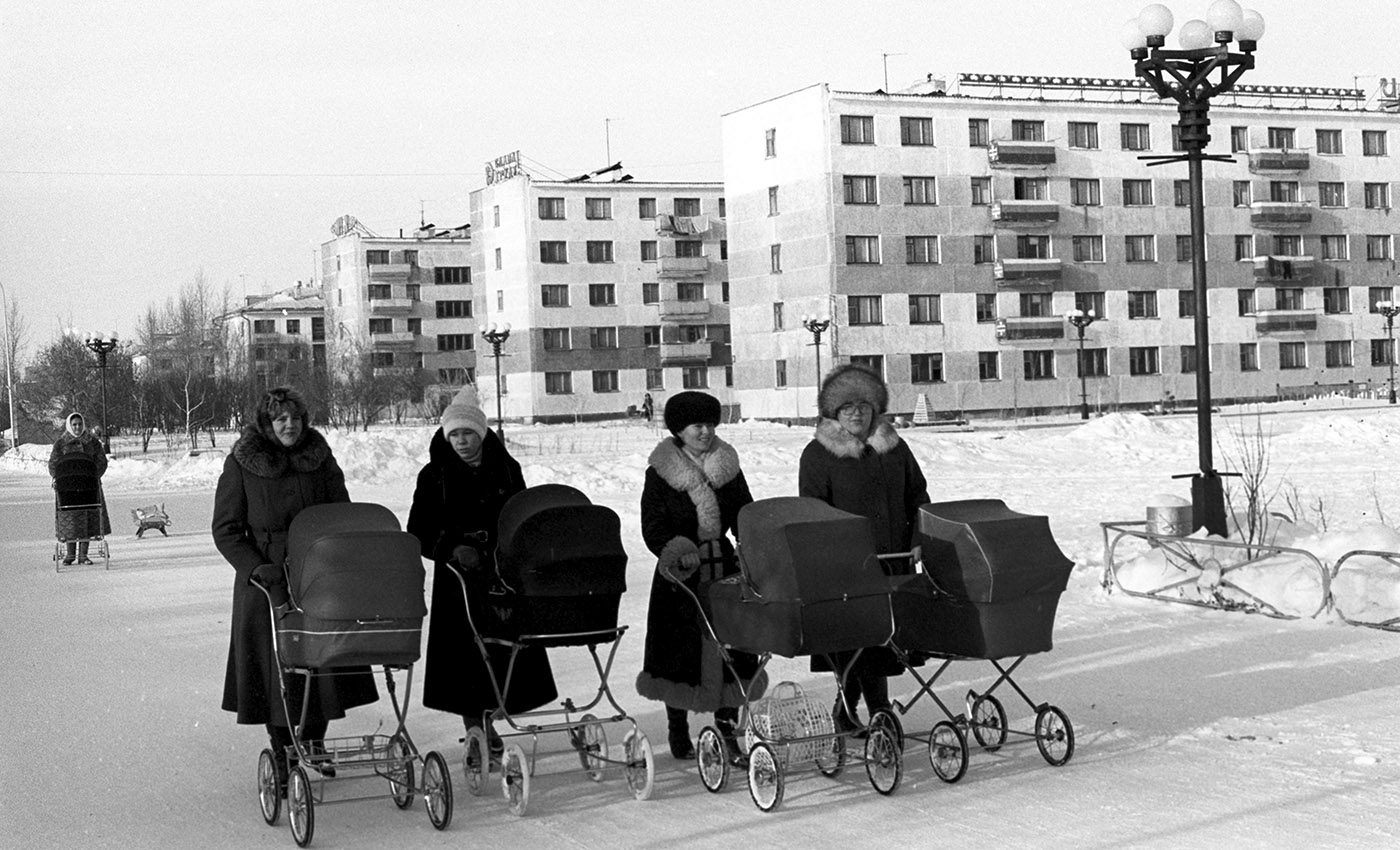 Мамы с колясками в селе Малиновка Целиноградской области Казахстана, 1970-е годы. Фото: Юрий Куйдин / РИА Новости / Архив