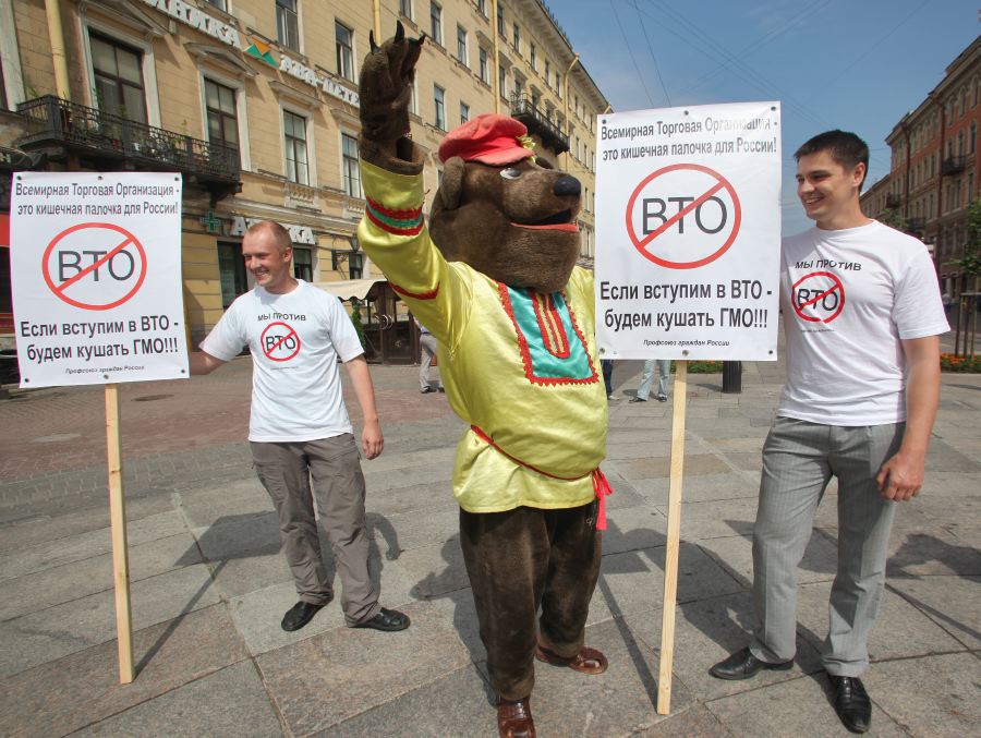 Участники общественной организации «Профсоюз граждан России» с плакатами с надписью «Если вступим в ВТО — будем кушать ГМО!!!» во время митинга против вступления России в ВТО в Санкт-ПетербургеФото: Петр Ковалев/Интерпресс/ТАСС «Все чаще и чаще в мире то тут, то там возникают возгласы ученых, которые говорят, что генномодифицированные продукты влияют на репродуктивную функцию человека и могут в конечном счете стать неким способом регулирования народонаселения на планете», — а это слова молодого политика Максима Мищенко на круглом столе, организованном в Общественной палате РФ в ноябре 2012 года. Участники заседания пришли к выводу, что ГМО могут представлять угрозу национальной безопасности.