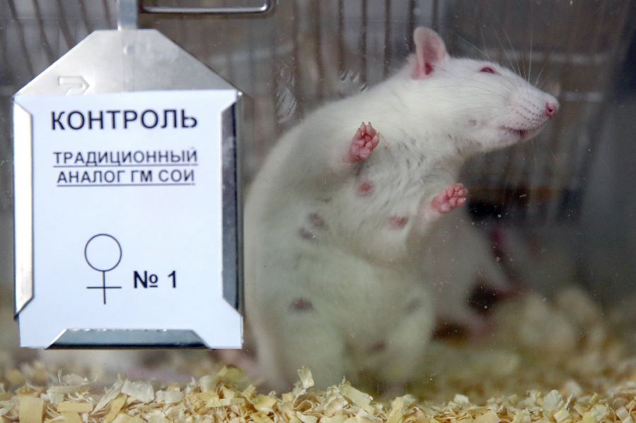 Лабораторная крыса, на которой испытывают трансгенную сою в клинике лабораторных животных в Научно-исследовательском институте питания Российской академии медицинских наук.Фото: Сергей Фадеичев/ТАСС — Были ли в вашей практике случаи, когда ГМО наносили непоправимый вред именно людям, а не крысам?