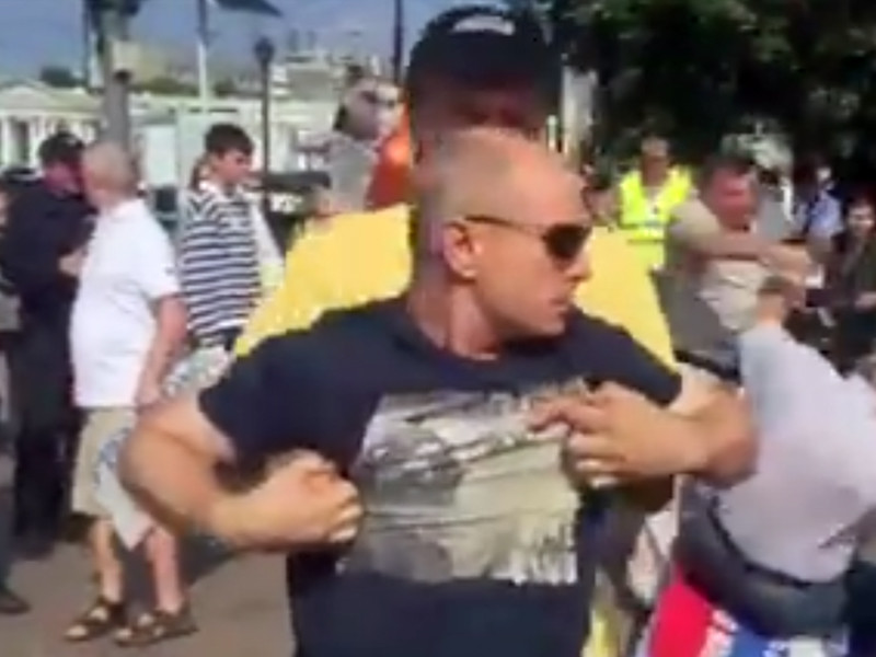 На записи видно, как несколько человек пытаются спровоцировать участников пикета на драку. Протестующие просят находящихся на месте сотрудников полиции принять меры. В конце концов полицейские отводят задир в сторону.