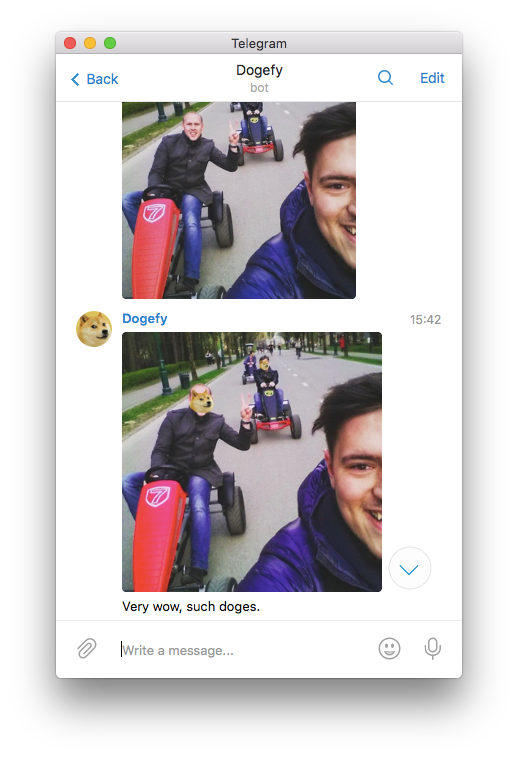 Бот, который находит на фотографии лица и накладывает на них доге (собаку породы сиба-ину).