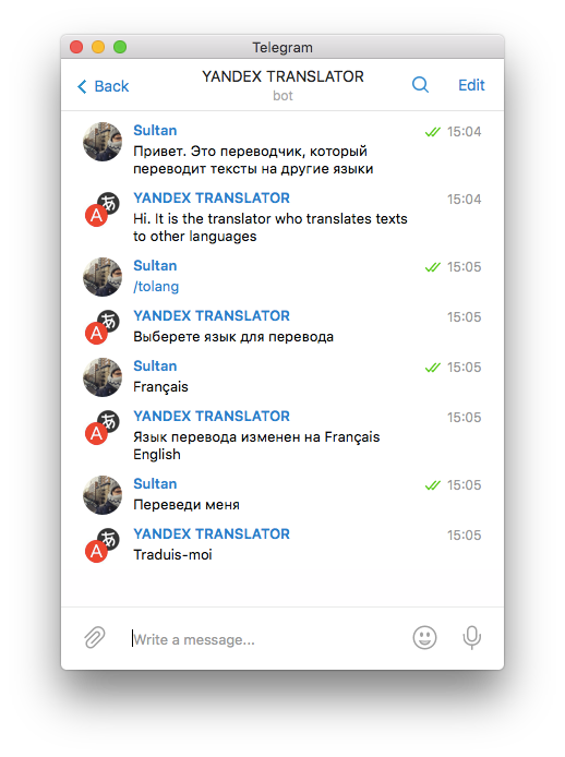 Бот, основанный на «Яндекс.Переводчике». Можно выбрать один из 12 языков для перевода.