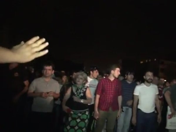 Вечером на площади Свободы в центре Еревана вновь собрался митинг оппозиции. Участники акции призвали уйти в отставку президента Армении Сержа Саргсяна, а также урегулировать мирным путем ситуацию вокруг «Сасна црер». После митинга началось шествие по центральным улицам города. Несмотря на массовые задержания после вчерашних столкновений с полицией, в акции, по оценкам СМИ, принимали участие около двух тысяч человек. Ранее Служба безопасности предупредила, что любой, кто попытается проникнуть без разрешения на территорию полка, будет считаться "пособником террористов" и привлекаться к уголовной ответственности.